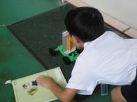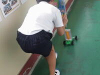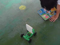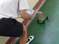 3年生の理科の授業では、「風の力のはたらき」について学んでいます。最初に「風の力で動くものは何だろう?」と問いかけると、子どもたちからは「旗」「落ち葉」「葉っぱがくるくる回る」「紙飛行機」など、さまざまな意見が次々に出ました。その後、子どもたちは風で動く車を作り、教室では扇いだり息を吹きかけたりして車を動かす実験を行いました。運動場では、自然の風を受けて車が動き出す様子に、「すごい!」と目を輝かせる子どもたちの姿が見られました。