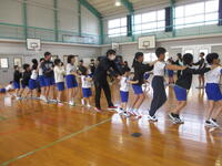 はじめに体育館で歓迎会を行い、1年生が名前と「好きな○○」を元気よく発表しました。次に、企画委員会が準備してくれた○×クイズやじゃんけん列車で、みんな大いに盛り上がりました。