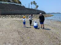 自由時間には、砂でダムを作ったり、水切りをしたり、シーグラスを拾ったりと、思い思いに楽しく過ごしていました。中には、自主的にゴミ拾いをする児童の姿も見られ、感心させられました。