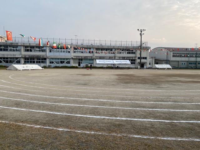 新型コロナのため、地域との合同開催はかなわず、縮小日程・プログラムです。そのため、万国旗もはれないと思っていましたが、保護者の皆様が、「万国旗をはろう!」と、様々なことにご協力くださいました。
