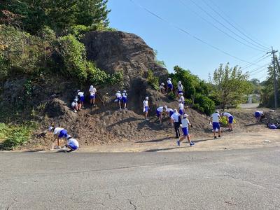 土曜授業日に行うたかぶと学習は、地域の方と触れ合う活動を行っていますが、1学期の芋植えは、新型コロナウイルス感染拡大防止のため、児童だけで行いました。