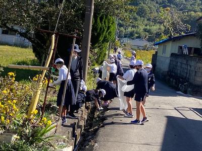 「レッツクリーン阿村」は、自分たちの学校や地域をきれいにするための活動です。ゴミ拾いの活動を通して、環境を大切にしようとする態度を育んでいます。