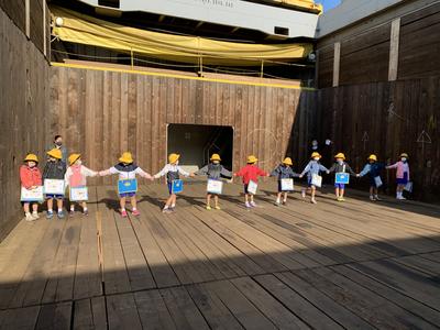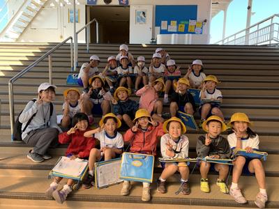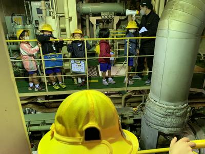 出かける前、子供たちに、「お家の人がお船の仕事をしている人?」と尋ねると、「はーい!」と元気よく手が上がりました。「阿村の基幹産業は海運業」という言葉は、低学年には難しいと思いますが、「お家の人や、お友だちのお家の人が、たくさんお船のお仕事をされていますよ。どんな様子か、しっかり見てきてね。」と送り出しました。