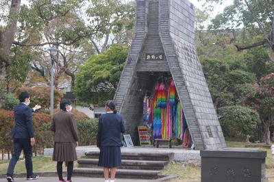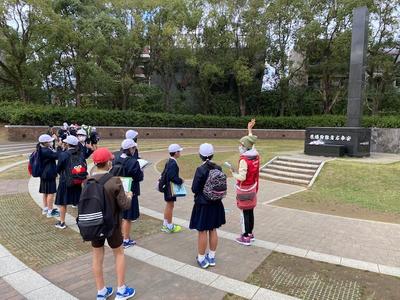 小グループに分かれて、平和学習フィールドワーク。平和ガイドさんが説明をして下さいました。