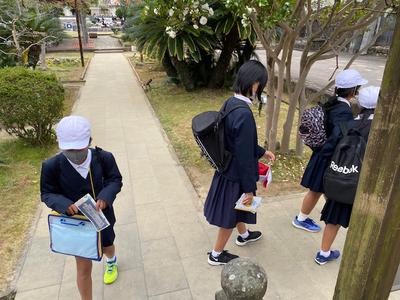 終わったら班ごとに振り返りです。「ちゃんと配れてよかったです。」「来年もできるよう、家を覚えておきます。」