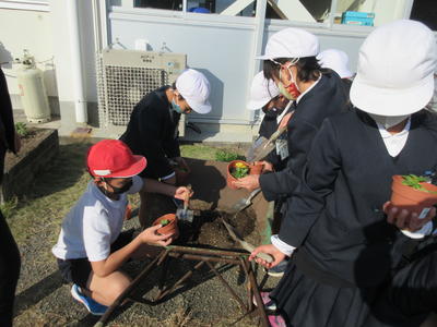学年でまき、それぞれの昇降口近くにおいてお世話しました。