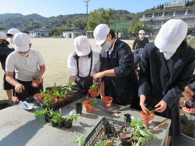 9月に児童みんなで種まきをして育ててきた花の苗を、阿村の一人暮らしのお年寄りの方にお届けしました。
