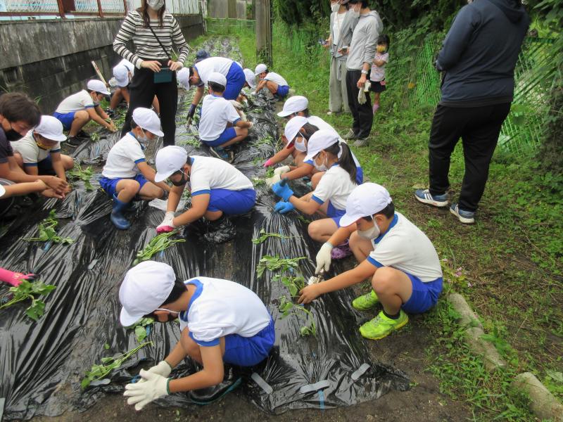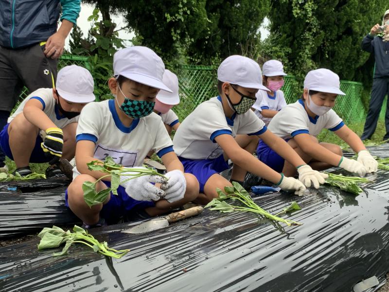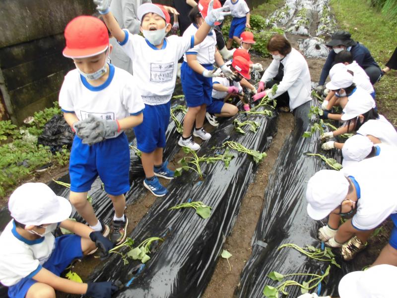 多くの人のおかげで今年も芋の苗植えが無事にできました。芋植えは学年毎にしましたが、秋の収穫は縦割りでできるようにコロナが収まっていればいいなと思います。収穫を楽しみにお世話をしていこうと思います。