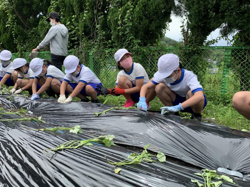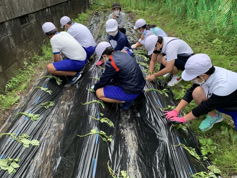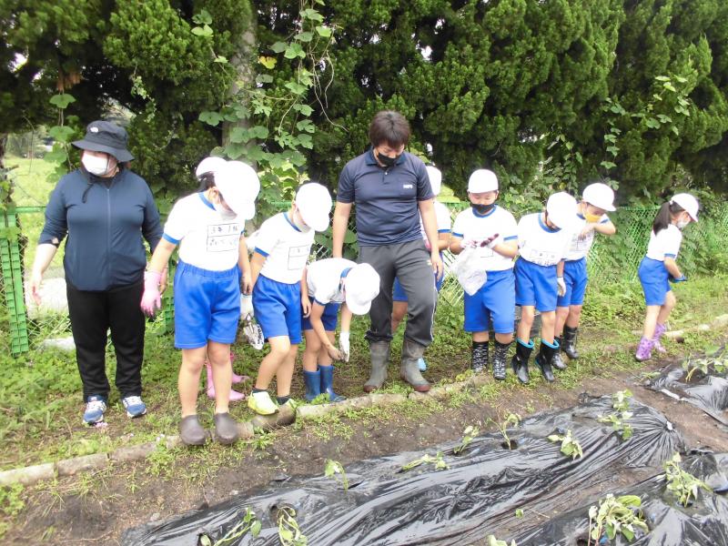 畝づくりは、6年生と7年部の先生がしてくれました。今年は6年生の人数が半分になりましたが、本当によく頑張ってくれました。7年部も用務員と理科専科を中心に、栄養・養護もとても頑張ってくれました。