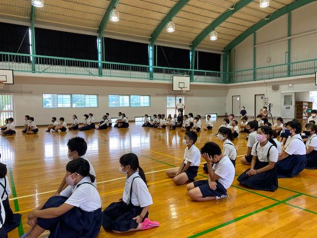 6年生が10のきまりをステージ上で実際にやって見せてくれたので、他の学年の子供たちにはとても分かりやすく、また、よいお手本になりました。