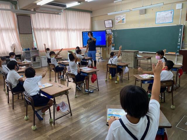2年生は、生活科のまとめ。「生活科の学習、楽しかった人?」「はーい!!」