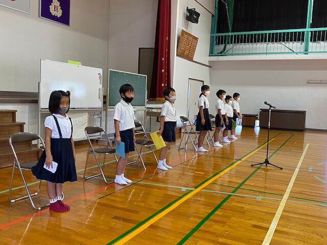 終業式では、学年の代表一人ひとりが頑張ったことを発表しました。
