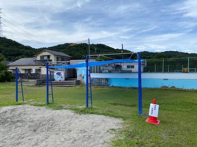 保護者のプールサイドでの応援は密を避けるため入れ替え制にしたので、ブルーシートをはり、待機場所を作りました。