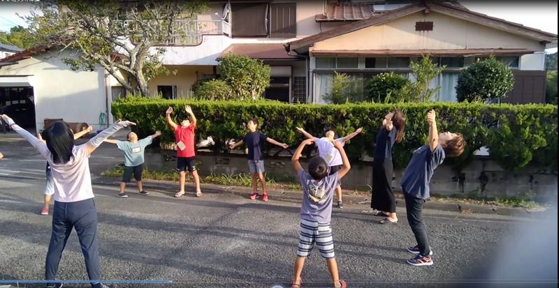 一ヶ所ずつ、子供たちの様子を見に行き、一緒に体操をして、その様子をお知らせします。