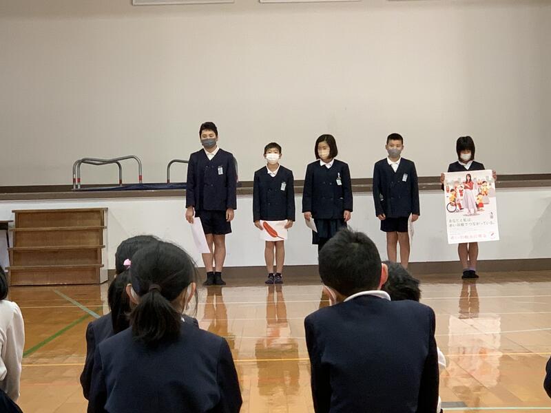 12/14の児童集会は、「赤い羽根共同募金」についてでした。