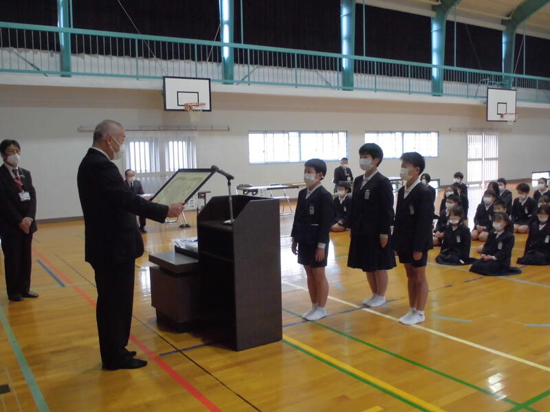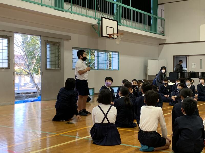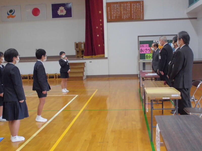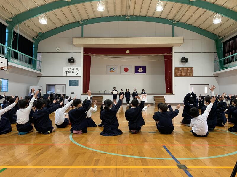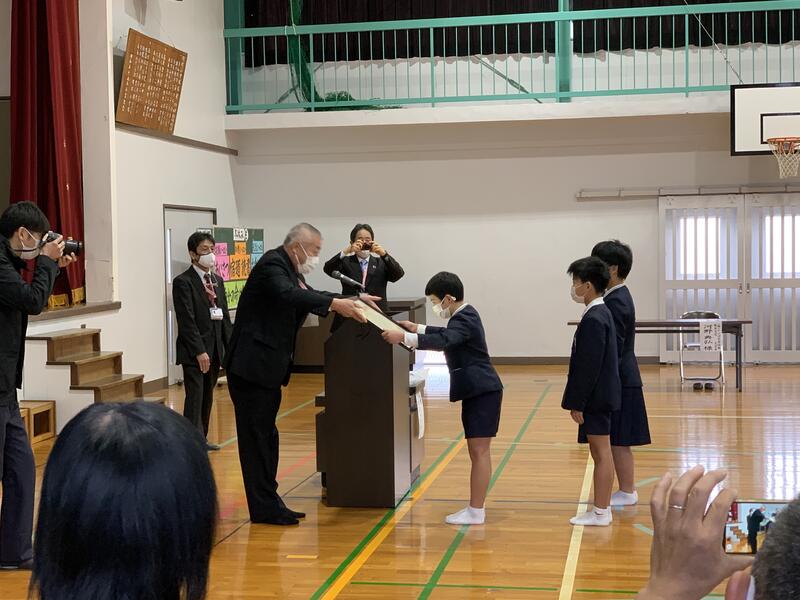 児童代表の健康委員長が、「受賞できたのは、これまで続けてきた先輩方のおかげ。これからも、ラジオ体操をみんなで頑張って、伝統として引き継いでいきます。」とお礼の言葉を述べました。
