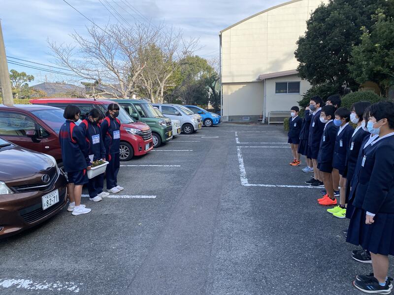 出発式では「お届けするのはお花だけですか?」と尋ねると、子供たちからは「心です!」「笑顔です」という答えが返ってきました。「今年も新型コロナウィルス感染予防のため、お花は玄関先に置かせてもらいますが、お花と真心をお届けしましょう。」と送り出しました。