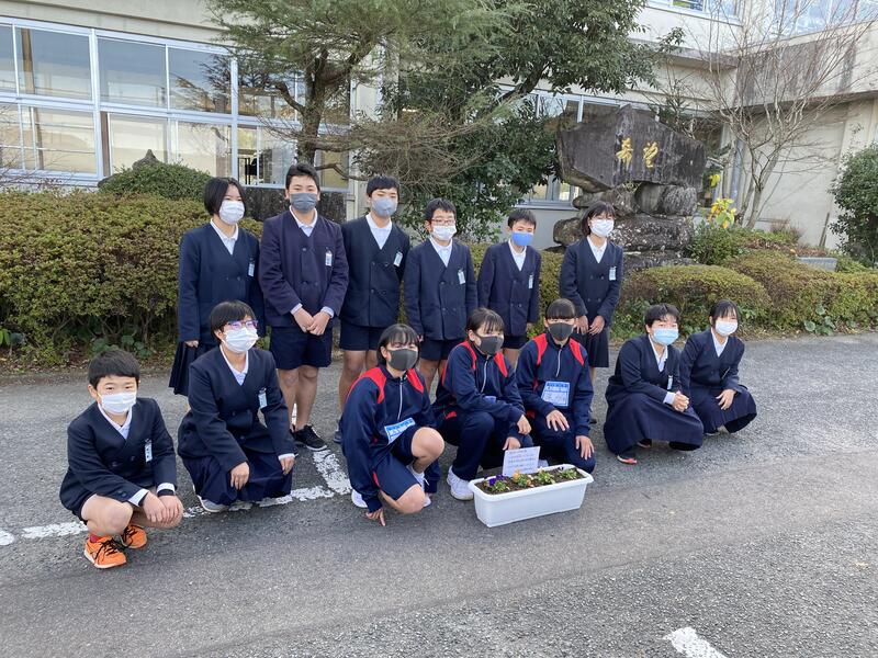 久しぶりの卒業生に、教員の方も、思わず「大きくなったわね。」「勉強頑張ってますか?」等質問攻めに。みんなで苗を育て、プランターのカードも書いたのだと教えてくれました。楽しい中学校生活を送っているようで、嬉しいです。