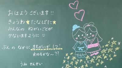 これは放課後の黒板です。担任から楽しい問題が出されていました。