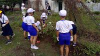 夏の間はオクラやナスなどの野菜を育てていましたが、秋から冬にかけての野菜を育てる準備のため、みんなで協力して草を抜きました。