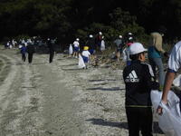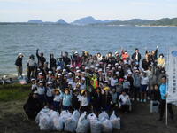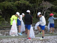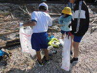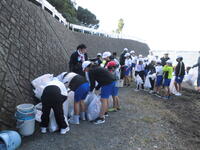 台風などの影響で、プラスチックごみや空き缶、ガラスの破片などが流れ着いた「まてが浜海水浴場」で、クリーン大作戦を行いました。