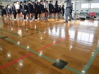 本日、全校でシェイクアウト訓練を実施しました。これは、地震が発生した際に自分の身を守るための「姿勢づくり」を身に付ける訓練です。