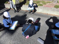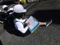 3年生が社会科の学習で、学校周辺にある「事故を防ぐための工夫」について調べに出かけました。