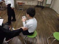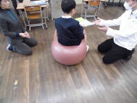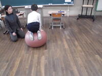 今回は、始めにトレーニングを行いました。目を細かく動かしたり、バランスボールに乗ってさまざまな動きをしたりしながら、体をほぐしました。