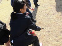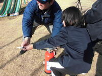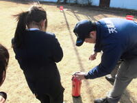 また、実際に消火器を使った体験や、煙が充満した状況を想定した煙体験も行いました。 児童は姿勢を低くして行動することや、落ち着いて避難することの大切さを、体験を通して学ぶことができました。