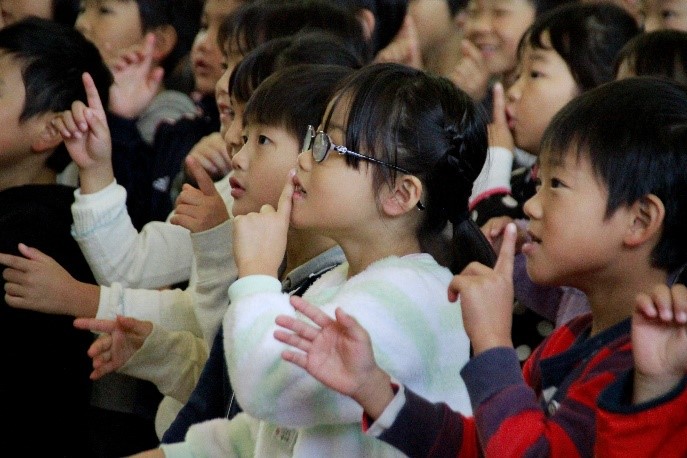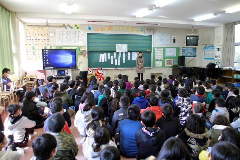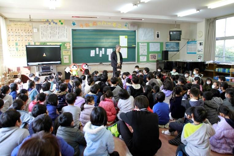 子どもたちからの歌「幸せ運べるように」の歌声と手話は、語り部さんへの感謝の思いと復興への願いが伝わりました。