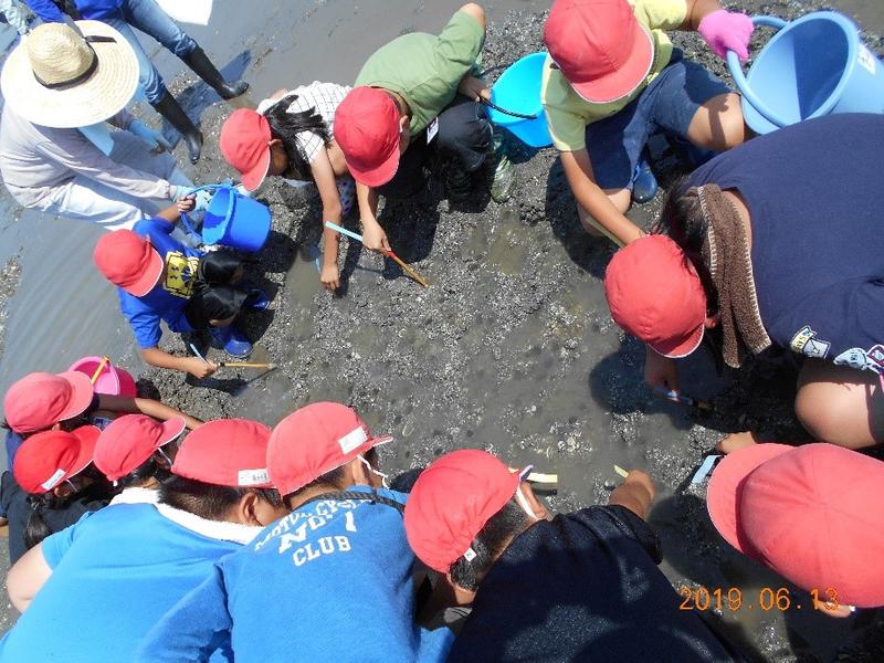 荒尾干潟に住む生き物に触れ合い、自分の住んでいる地域のことを学びました。