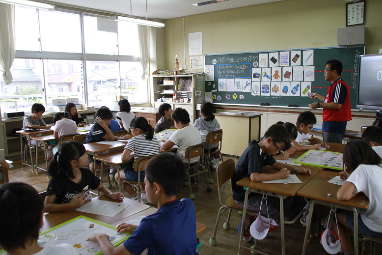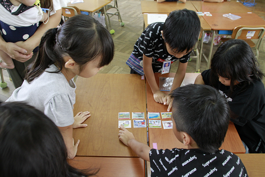 1時間目の授業参観では、子どもたちがカードを使って防災についての意識を高める学習を行いました。