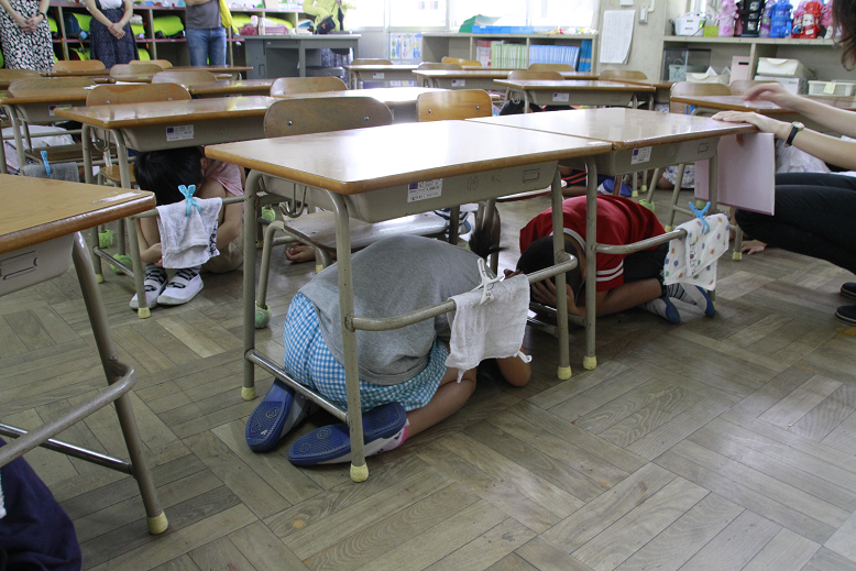 先生の指示をよく聞き、「おはしも」(おさない、はしらない、しゃべらない、もどらない。)を合い言葉に素早く、真剣に避難することができました。どんな状況でも落ち着いて行動できるよう訓練をしっかり行うことがとても大切です。家庭でも、もしもの場合の避難方法を、日頃から確認していただければと思います。