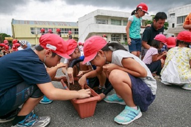 参加した2年生は、「はるかのひまわり」の由来について話を聞いたあと、プランターにひまわりの種を植えました。ひまわりを咲かせることで、復興への思いや命の尊さなどを考え直す機会としています。