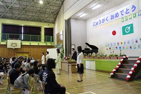 4月10日(火)に入学式が行われました。本年度は、74名の新入生を迎えることができました。小学校で友達をたくさんつくって、「正しく やさしく たくましく」成長してほしいと思います。