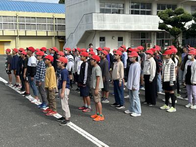 4年生の社会科の学習で、荒尾市防災安全課の方を講師にお招きし、防災学習を行いました。災害に関してクイズ形式でお話があったので、楽しく学ぶことができました。