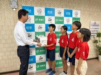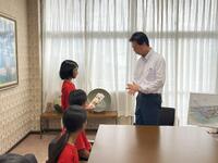 荒尾市長と面会した4名の代表児童は緊張した面持ちでしたが、