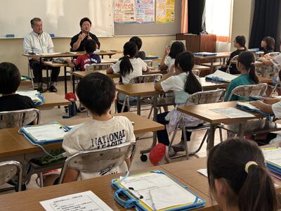 4年生が人権学習の一環として、荒尾市啓発センターと児童センターを見学しました。この両施設は、差別をなくすために地域の方の思いが詰まった施設で、講師お二人の話を聞きながら、しっかりとメモをとっていました。