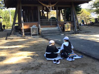 5年生が近くの神社にスケッチに行きました。良い作品ができることを楽しみにしています。