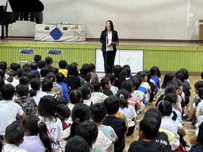 前期終業式で、校長先生より前期うれしかったことや各学年の頑張りの紹介がありました。