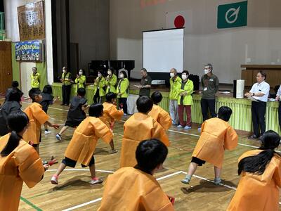 4年生が一小校区の民生委員さんと交流会をしました。互いに名刺交換をしながら楽しく交流を深めました。また、民生委員さんからボールをいただき、お礼にキッズソーランを踊りました。大変喜んでいただきました。