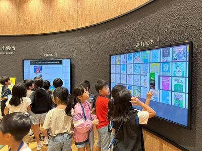 子どもたちは「図書館の本の数は、1000冊ぐらいと思っていたが、約12万冊あると聞いてびっくりした」などの感想を述べていました。また、検索機や図書除菌機など、本を管理するための機会がたくさんあり、実際触らせていただきました。