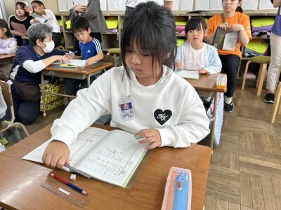 たくさん質問してメモを取り、学習したことを絵日記にまとめることができた。