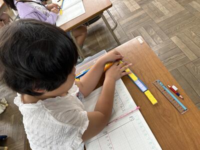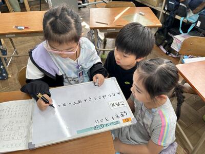 3校時に1年1組の研究授業がありました。算数「たし算」の学習です。1年1組の子どもたちにとっては、初めての研究授業でしたので、周りを先生方に囲まれ、少し緊張気味でした。しかし、授業が始まると、生き生きとした声で発言する子どもたちの表情がとてもよかったです。問題は8+3の計算の仕方です。3を2と1に分けて、10のまとまりを作って計算することがポイントとなります。サクランボ計算したり、ブロックを操作して考えたりしたことを説明して理解の定着を図りました。学習リーダーのはきはきとした声もとても素敵でした。1年1組の頑張りが見られた研究授業でした。