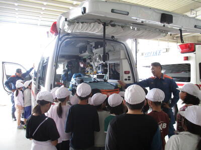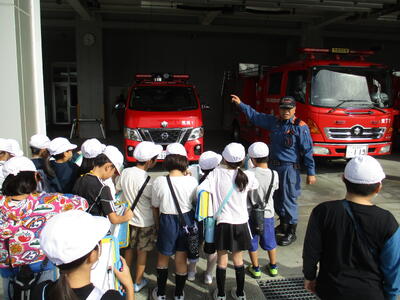 3年生が消防署見学に行きました。様々な消防施設をみたり、話を聞いたりする中で、消防士の仕事の大変さを感じ取っていたようです。