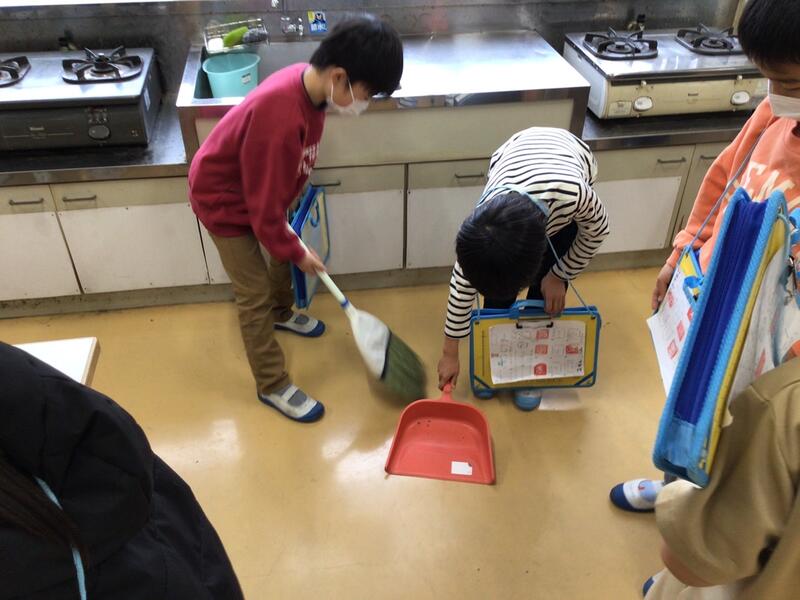 ★5年生が家庭科の授業で、2年生に掃除の仕方を教えてくれました。