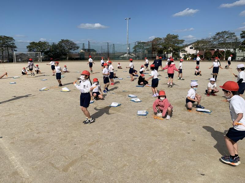 チーム戦で、1分間に跳んだ回数の合計を競います。最高で、1分間に185回跳んでいる子もいました。
