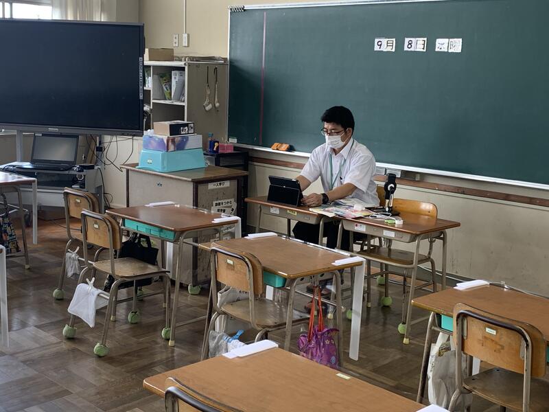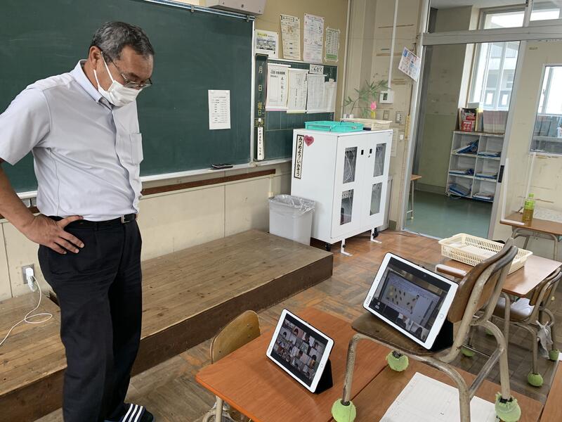 校長先生は、みんなが授業にちゃんと参加できているか見守っていました。