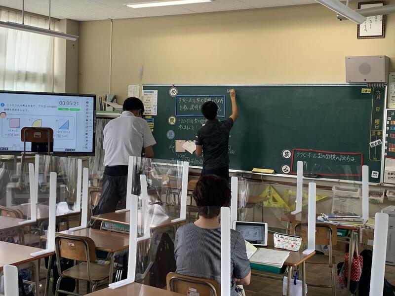 難しい円の勉強です。黒板と電子黒板を映しながらの授業でした。