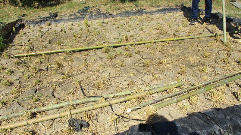 稲架(はさ)にかけて、稲を干して乾燥させます。